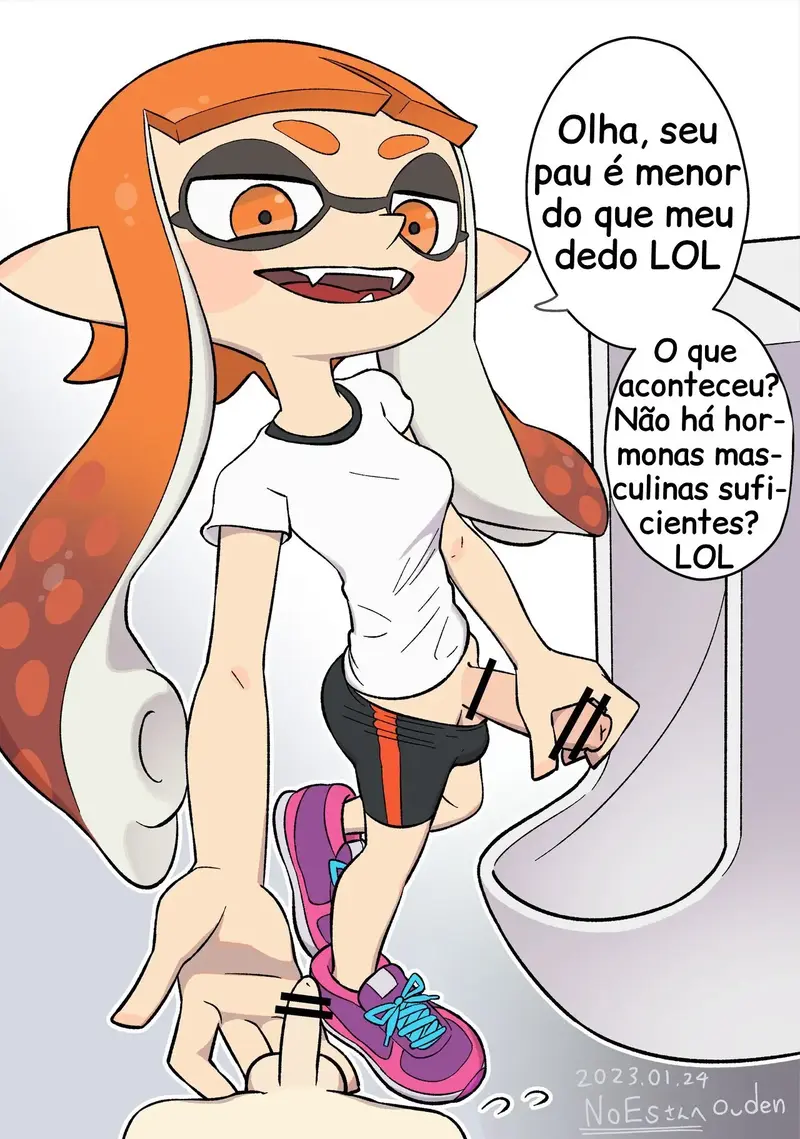 [おデン] ふたなりのイカちゃんに男子トイレで絡まれる (スプラトゥーン) [ポルトガル翻訳]
