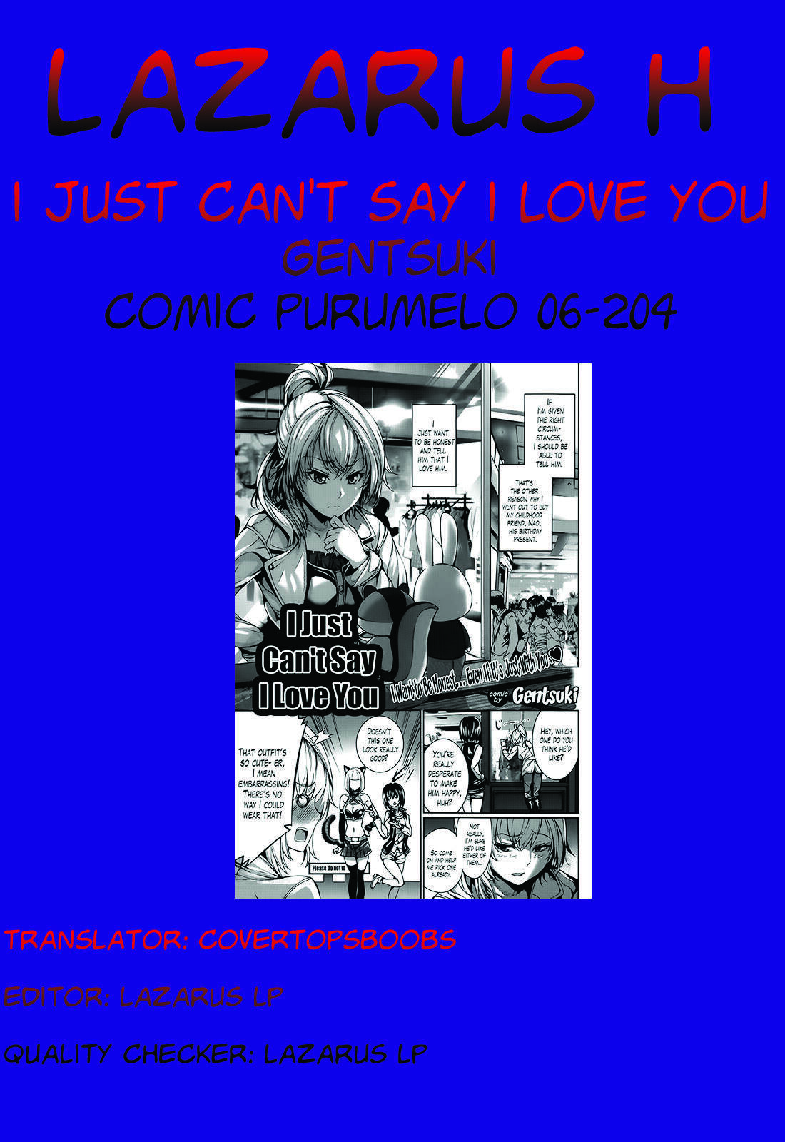 [Gentsuki] Atashi wa Sukitte Iemasun. | I Just Can't Say I Love You (COMIC Purumelo 2014-06) [English] [Lazarus H]