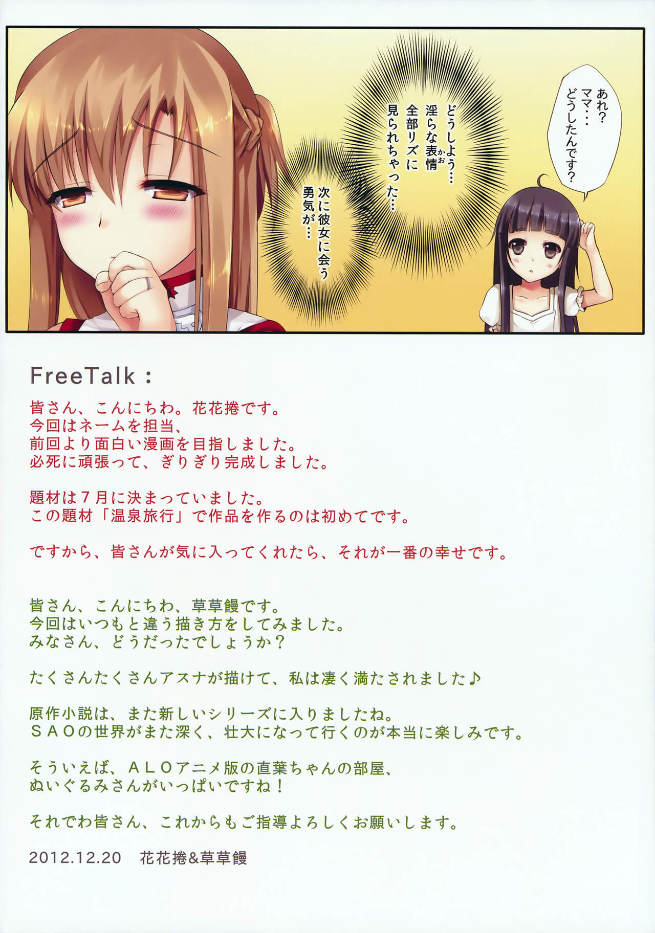 (C83) [TwinBox (草草饅、花花捲)] 愛妻と温泉旅行 (ソードアート · オンライン)