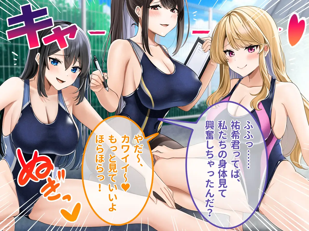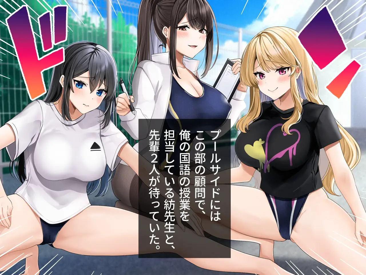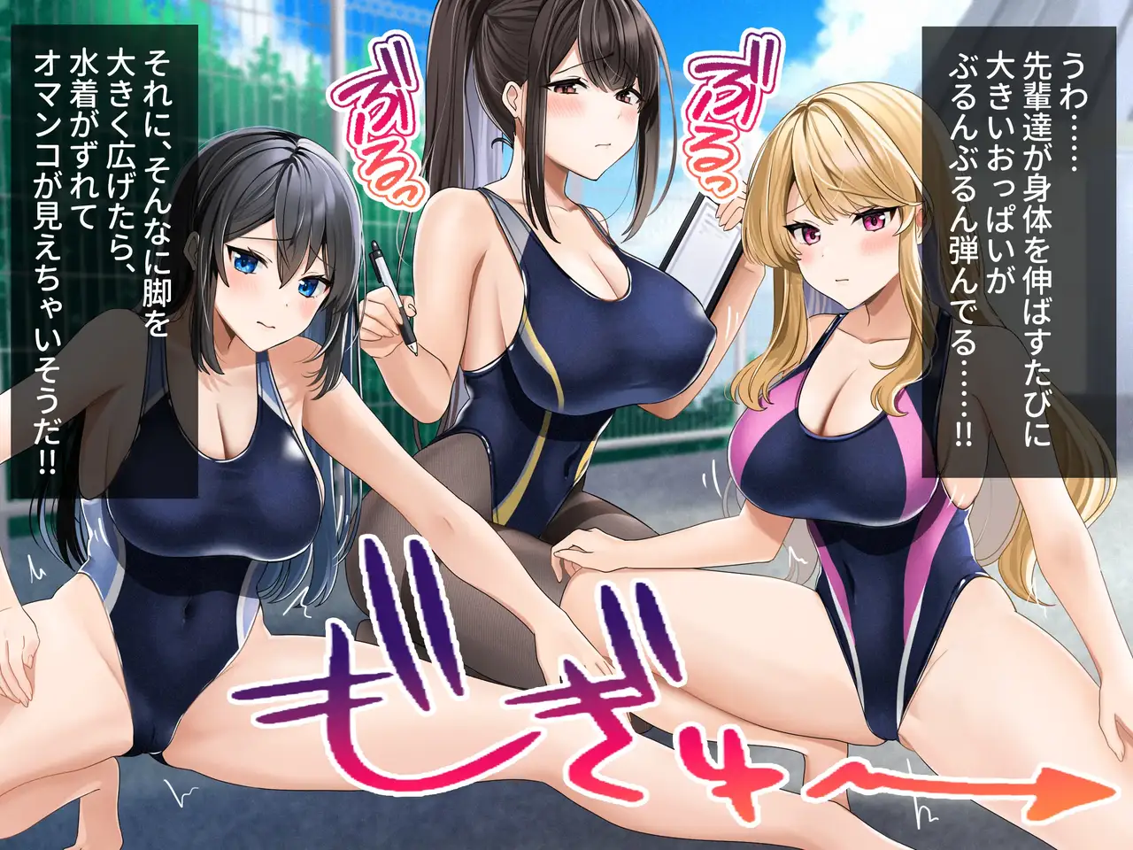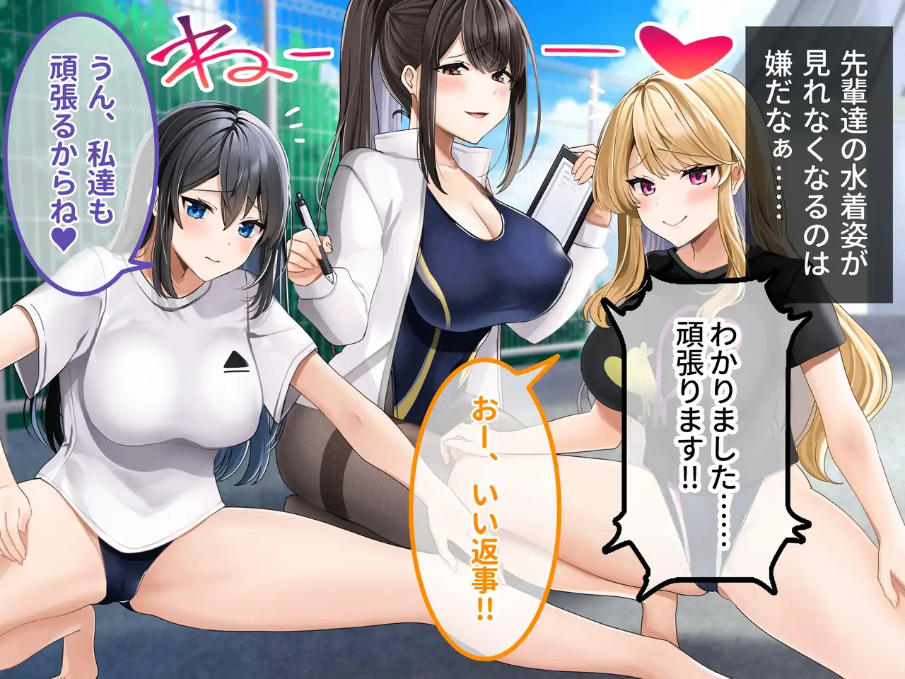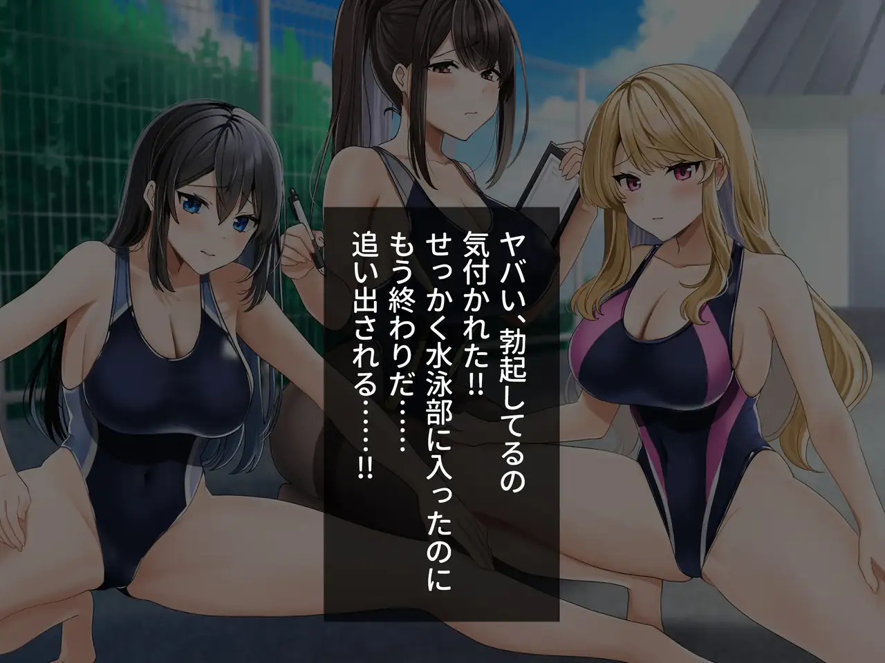 [ラミノネイリス] ドスケベ種付け水泳部♪!特訓だ!と思ったらホントはチンポ欲しいだけの孕みたがり先輩たちにハイレグな水着で精液搾り取られる!?