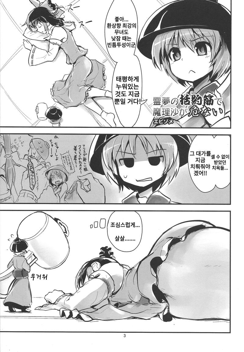 (C86) [106m (エビゾメ)] 霊夢の括約筋で魔理沙が危ない (お前らが大きくなあれ! 東方巨人化合同誌) (東方Project) [韓国翻訳]