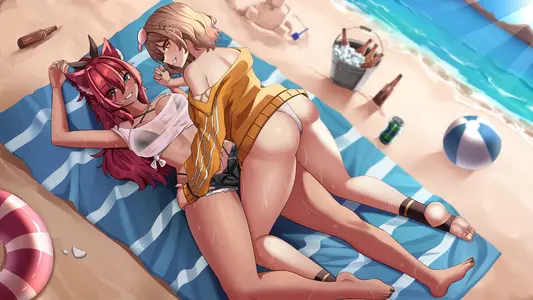 Akane and Anis NIKKE beach tickle fight.